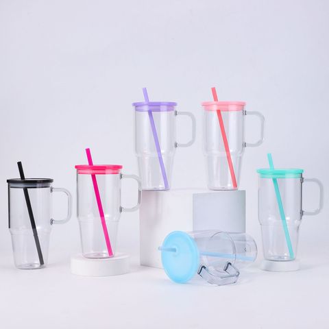 STARLII Logotipo personalizado 16oz 24oz Taza a granel Aislamiento de doble pared Vasos de vidrio acrílico de plástico transparente con pajita y tapa a granel